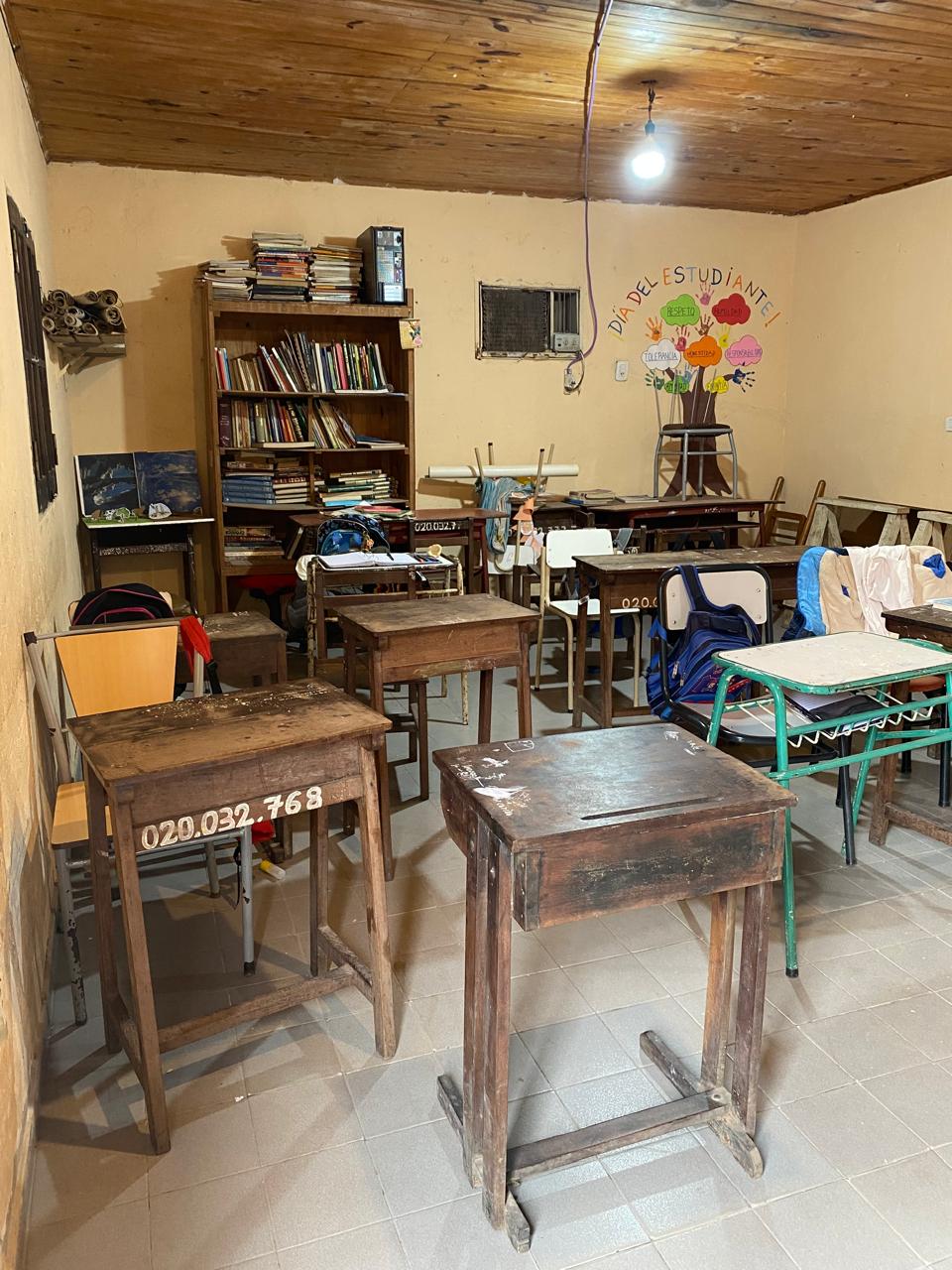 A pedido de APAER, acompañamos a Ariel Hartman en sus inicios de padrino de esta escuela durante el año 2015. Se trataba de una escuela con muchas deficiencias edilicias y de materiales. Un lugar donde no solo era difícil llegar para nosotras sino, también, para la ayuda de los padrinos. Les entregamos alimentos y útiles. En el último viaje, en 2016, como regalo de despedida, les compramos un freezer nuevo, imprescindible para el mantenimiento de los alimentos de los alumnos.